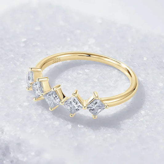 925 Silver 3x3mm 0.3ct Princess Square Cut D Color VVS1 Moissanite 5-Stone Engagement Women Fashion Five Stones Ring for Women