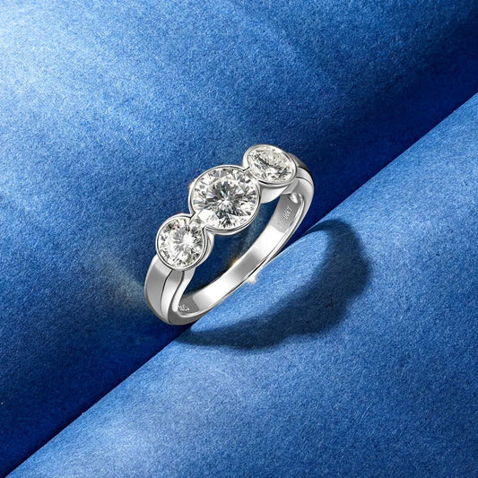 925 Silver Clad 6.5mm 1.0ct 5mm 0.5ct Round Moissanite Three Stone Engagement Ring Women Wedding Band for Women