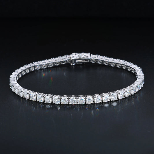 Women Jewelry VVS Moissanite Diamond Clustered Tennis Bracelet White Gold Plated 925 Sterling Silver Tennis Chain Bracelet