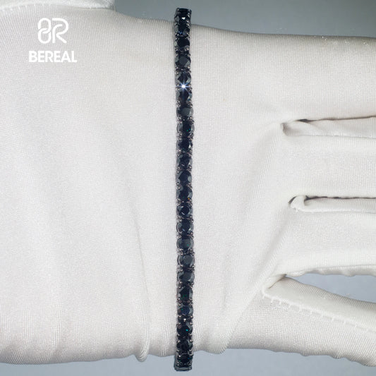 [US] in Stock 5MM Black Vvs Moissanite Tennis Bracelet Iced Out Round Brilliant Cut Diamond 925 Silver Tennis Chain