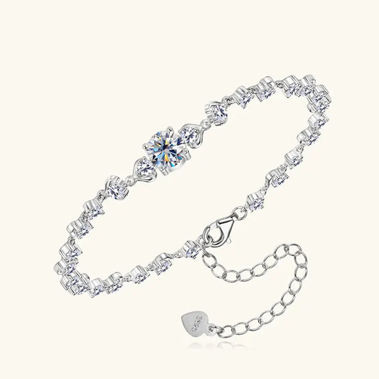 Women's Fashion 925 Silver 1.0ct 6.5mm & 2.8mm D Color VVS1 Round Moissanite Pod Design Bracelet with Certificate Ladies Jewelry