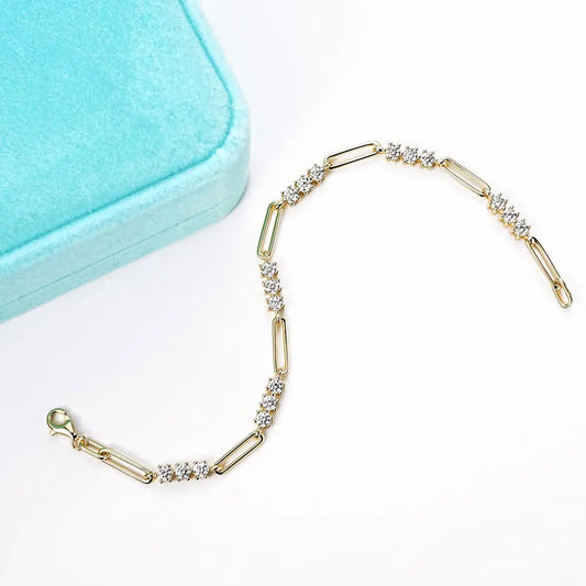 Hand Jewelry 2mm Moissanite Bracelet Korean Ins 925 Sterling Silver Paper Clip Chain Adjustable Bracelets for Women