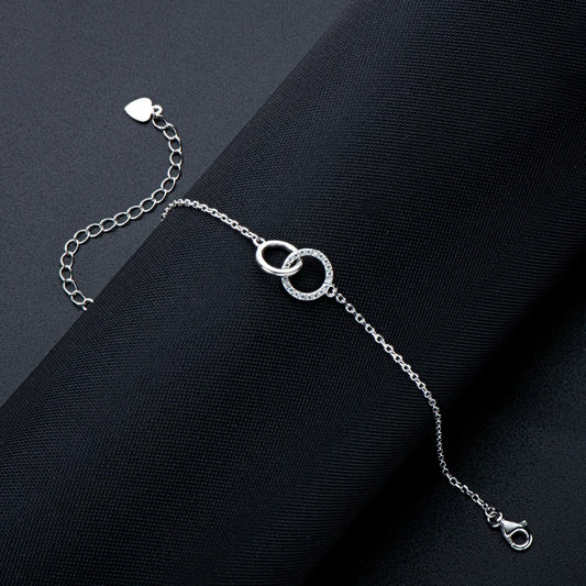Geometric Round Casual 925 Sterling Silver Pave 1mm 0.005ct Moissanite Double Circle Eternity Sister Bolo Bracelet