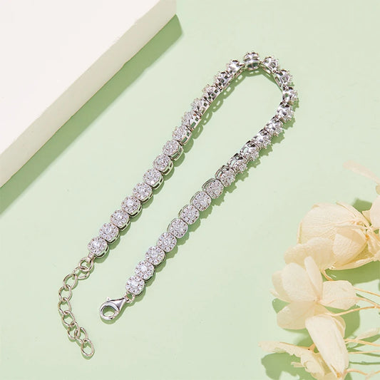 925 Sterling Silver Charm Flower Bracelet Summer Jewelry 14k Gold Plated 2mm All Moissanite Diamond Bracelet for Women