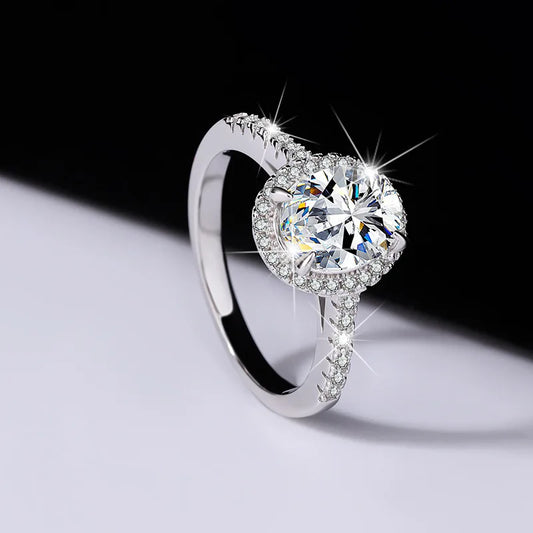Luxury 925 Sterling Silver Halo Ring 9mm 2ct 2.0Carat Oval Cut Moissanite Engagement Rings for Women