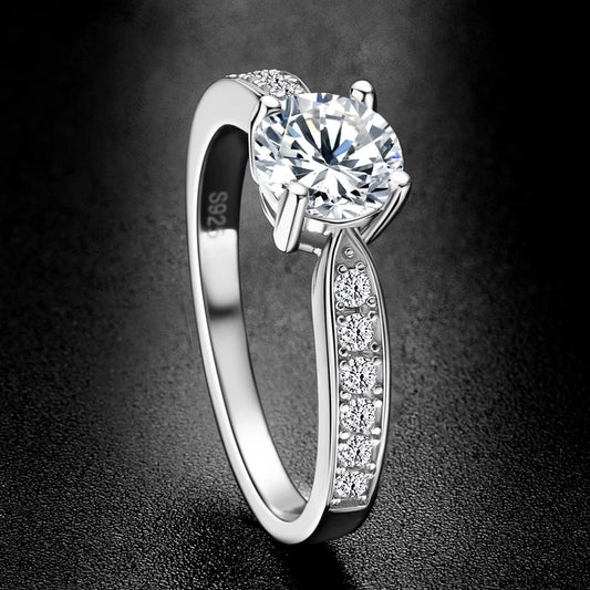 Fashion Ring S925 Sterling Silver 0.5Carat Moissanite Classic Wedding Engagement Ring for Women with GRA