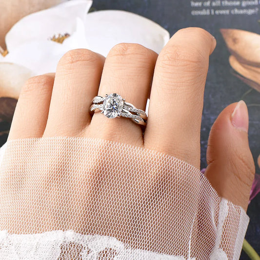 GRA Wedding Band Jewelry Ring Set 2CT Moissanite 925 Sterling Silver Oval Infinity Engagement Ring for Women