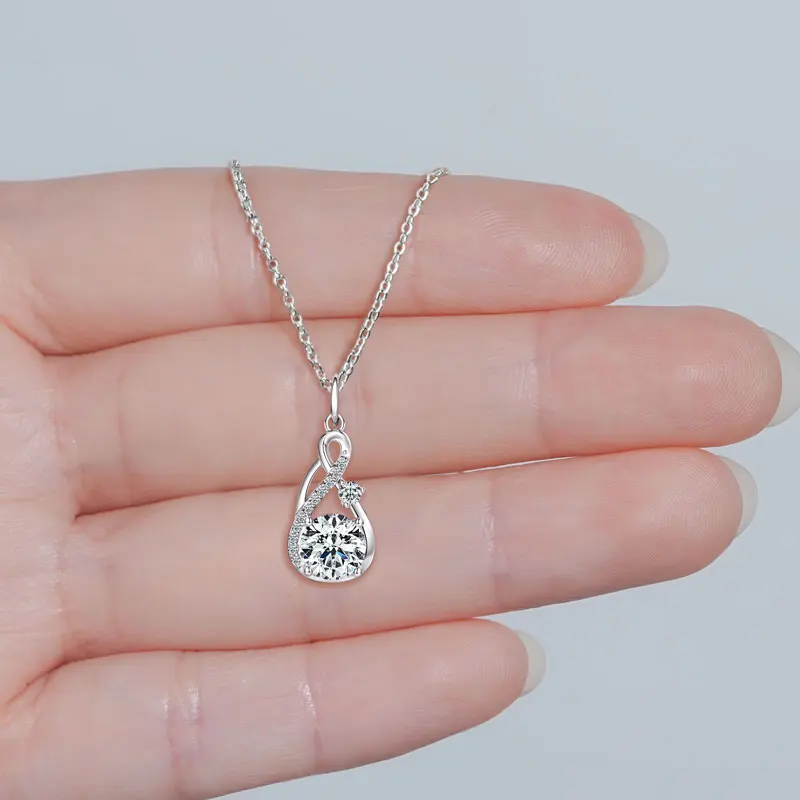 925 Sterling Silver Round Cut Moissanite Infinity Pendant Necklace |