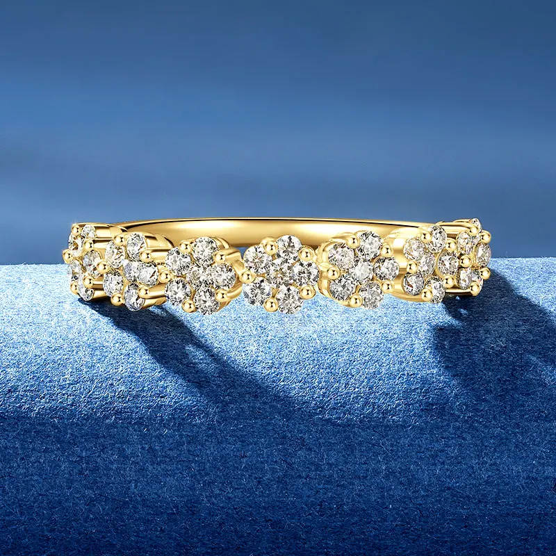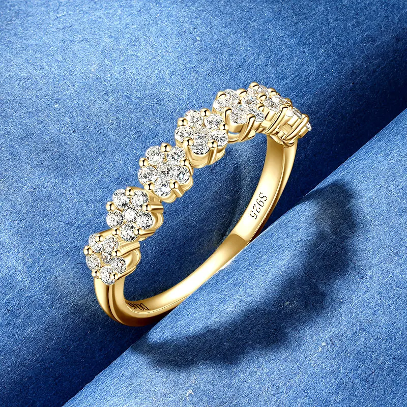 Engagement 14K Gold Plated 925 Silver Moissanite Flower Half Eternity Band |