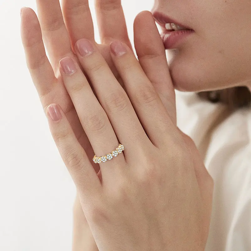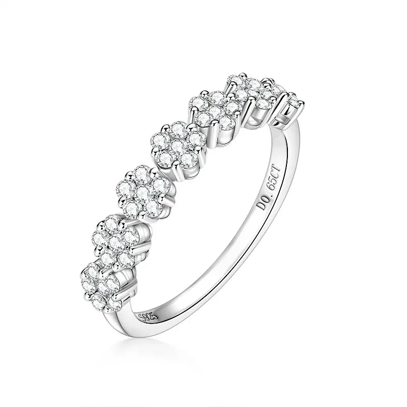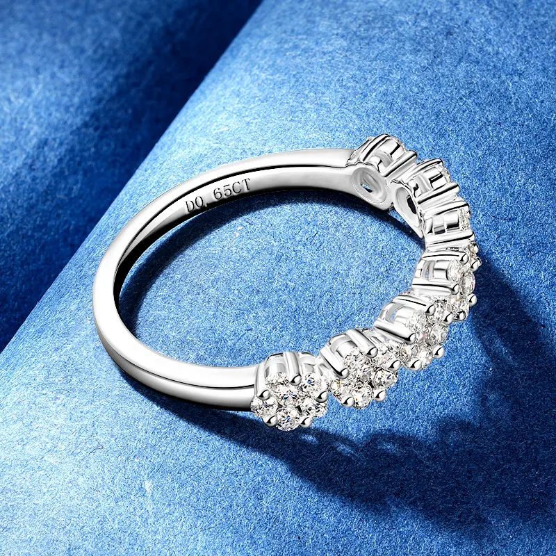 925 Silver 0.65CT 1.6mm & 1.5mm Round Moissanite Flower Half Eternity Band Lady Seven Little Flowers Exquisite Half-body Ring