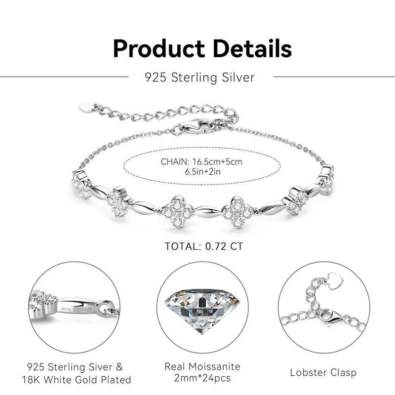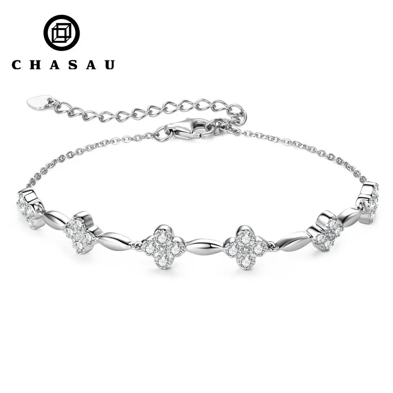 2mm Moissanite Bracelet 925 Sterling Silver Four-leaf Flower Adjustable Chain Bracelets for Women Girl Charm Hand Jewelry |