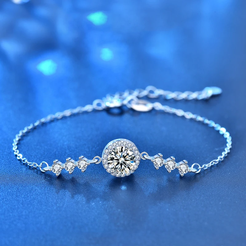 Fashion 925 Sterling Silver Round Cut Moissanite Bracelet for Women |
