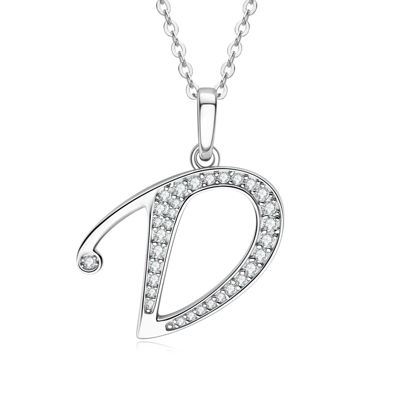 Many year factory Moissanite 925 Sterling Silver Fashion A-Z Solitaire 26 English Initial Pendant Necklace |