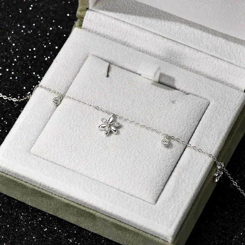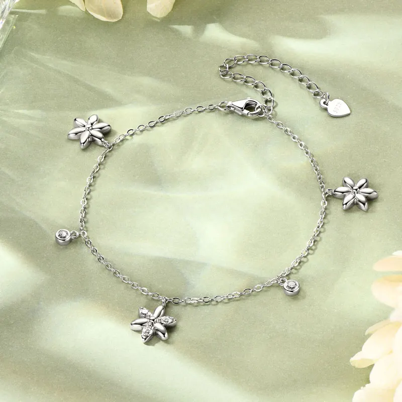 Adjustable Fashion Style Mossanite Fine Flower Pendant Bracelet for Women Girls |