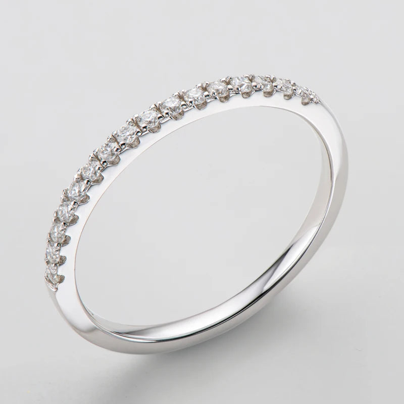 A carefully crafted ring that highlights brilliance and precision. The luminous moissanite paired with a smooth sterling silver band creates a look that feels refined, balanced, and effortlessly elegant.