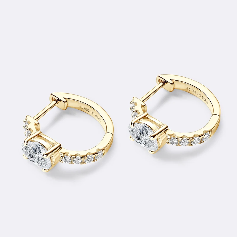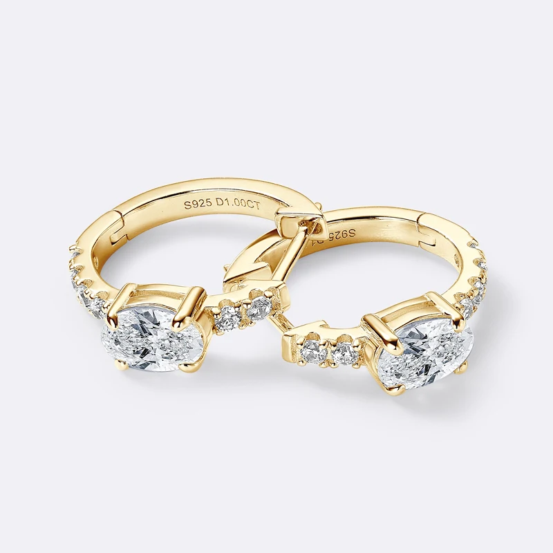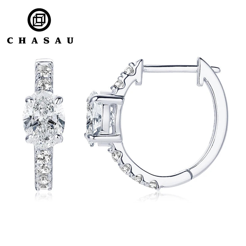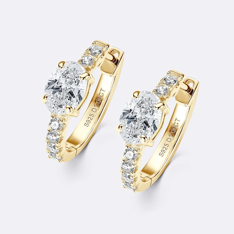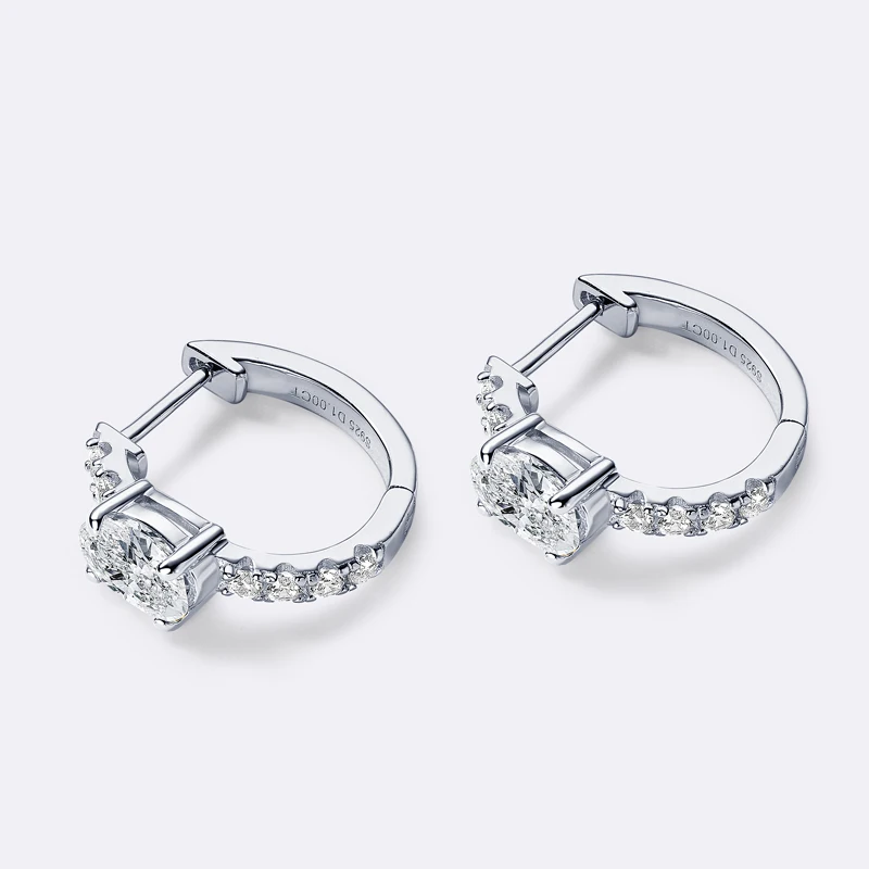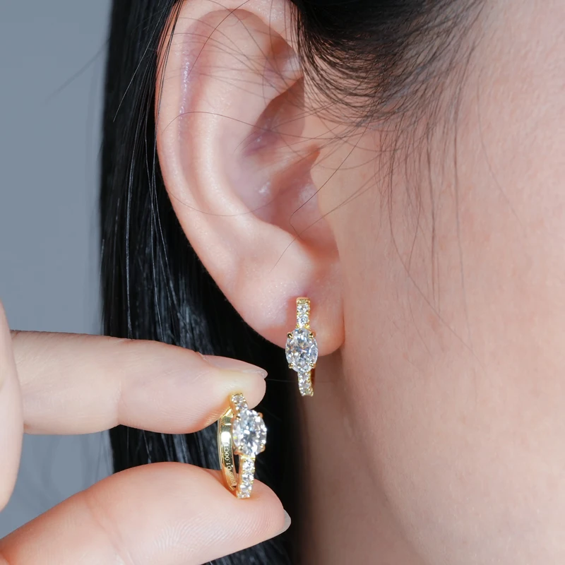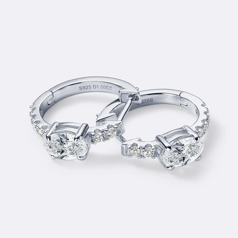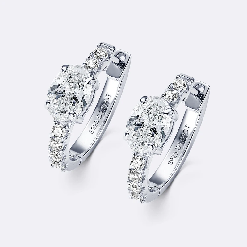 Certified Jewelry 100% 925 Sterling Silver 1.0ct Oval Cut D Color Moissanite Hoop Huggie Earrings for Women |
