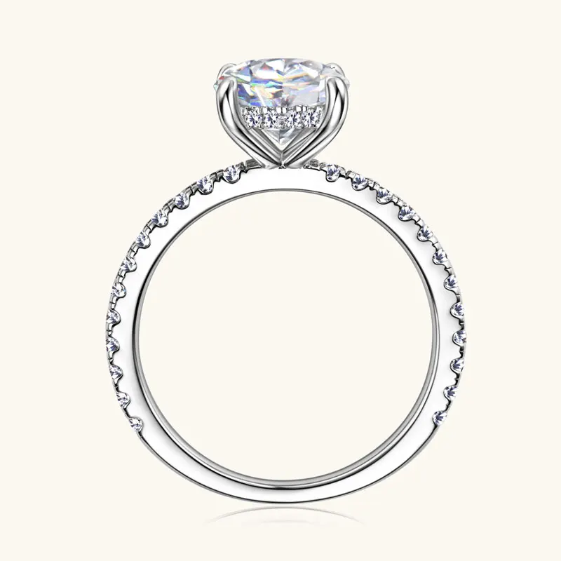 Classic 925 Sterling Sliver 2CT 8mm D color VVS Round Cut Moissanite Simple hidden halo Engagement Ring for Women