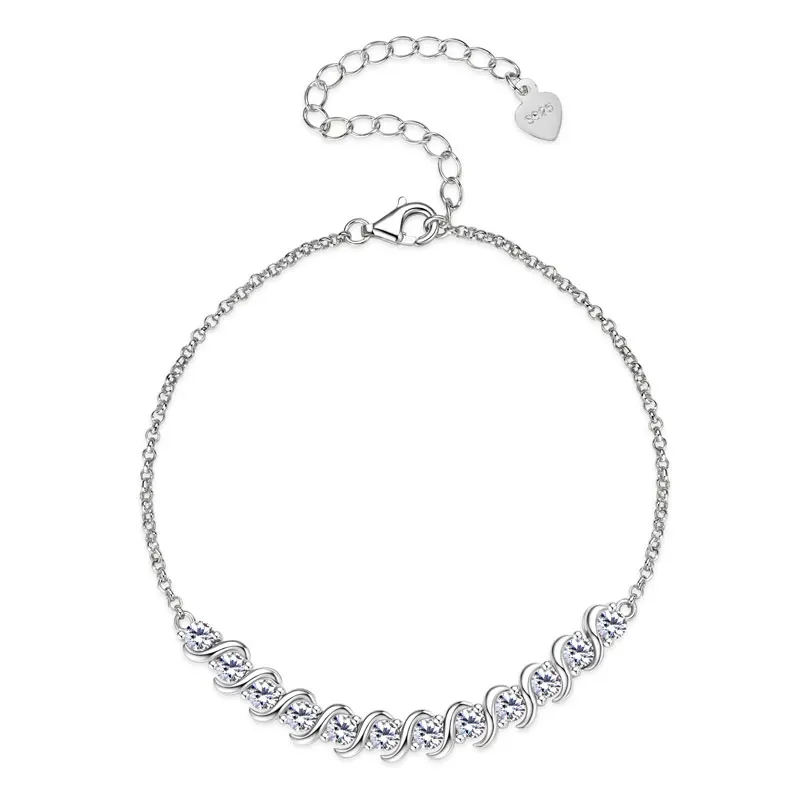 Fashion Classic Wedding 925 Sterling Silver D Color VVS1 3mm 0.1ct Round Cut Moissanite Bracelet for Women