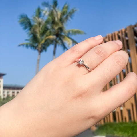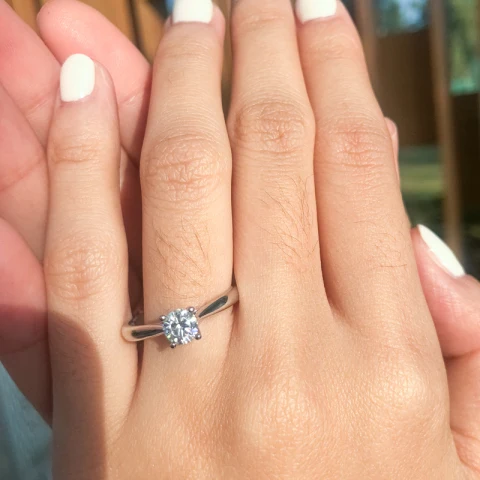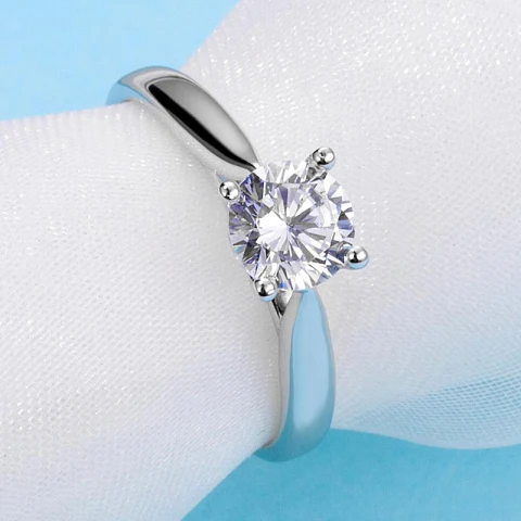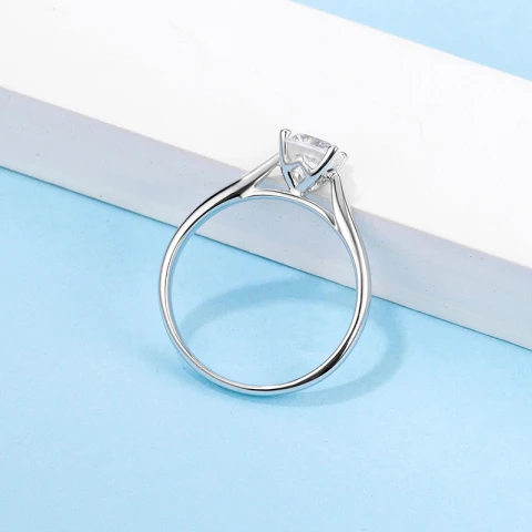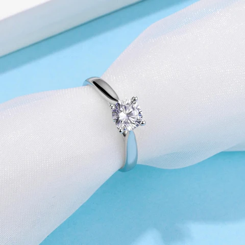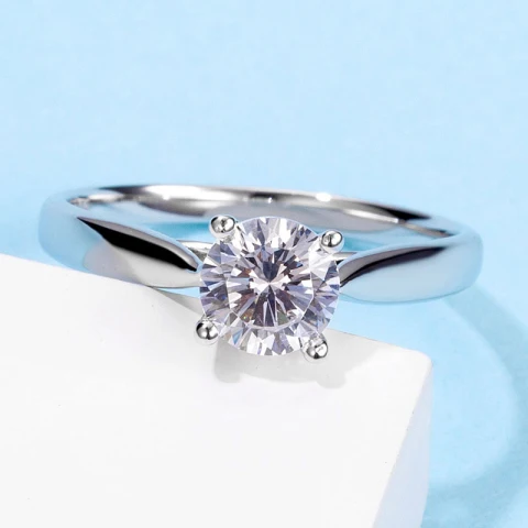 A refined sterling silver ring set with a brilliant round moissanite. Its clean, classic design allows the stone to shine with a crisp, radiant sparkle. Elegant and effortlessly timeless, it’s a piece that brings quiet luxury to every occasion.