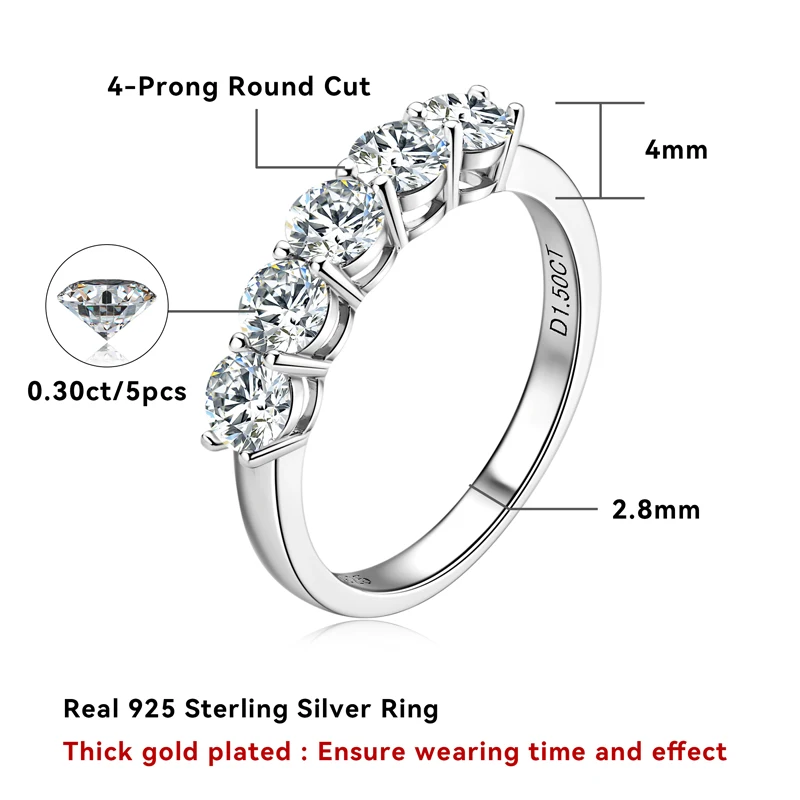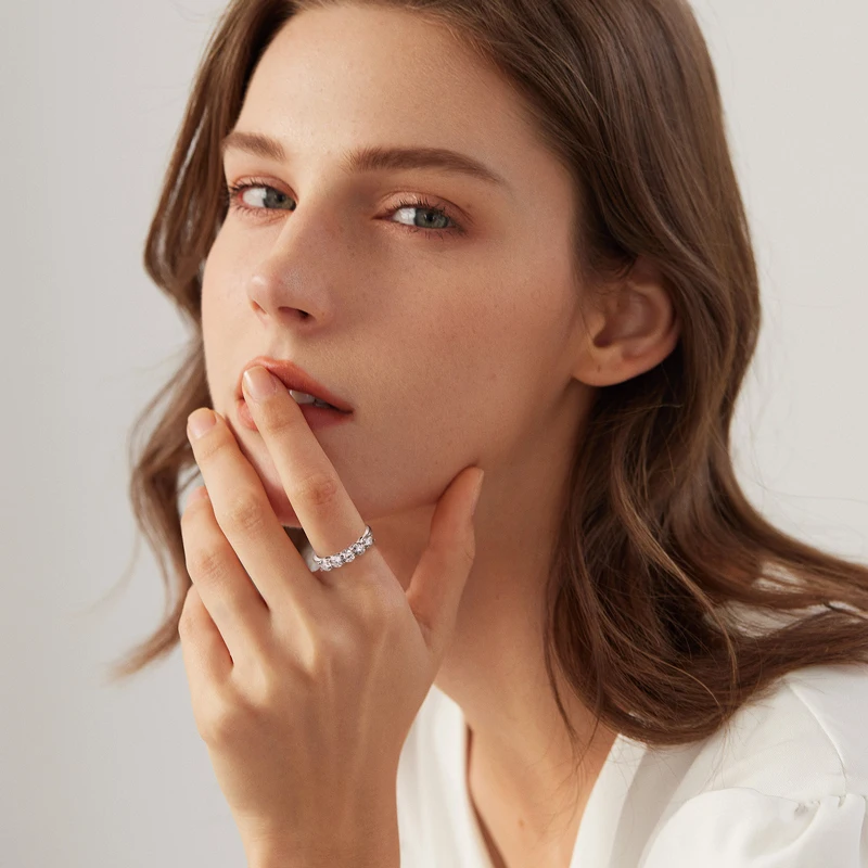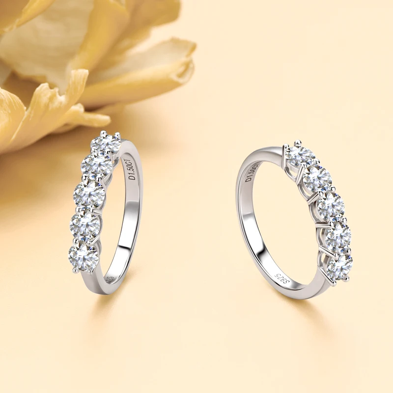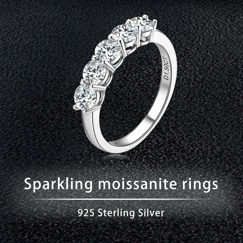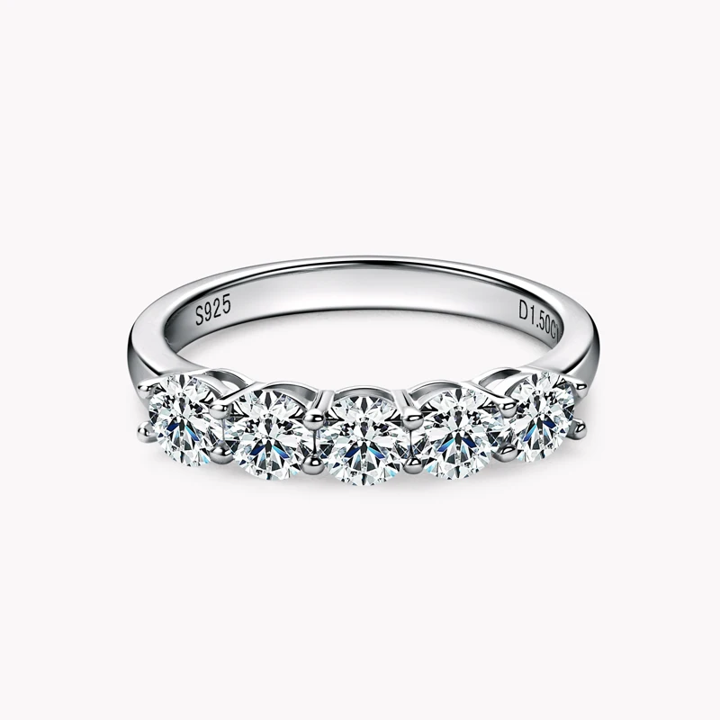 Hot Selling High Quality Sterling Silver S925 moissanite ladies solitaire ring 5-Stone Ring |
