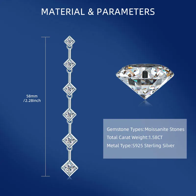 Product name: 925 Silver Moissanite Kite Drop Earrings