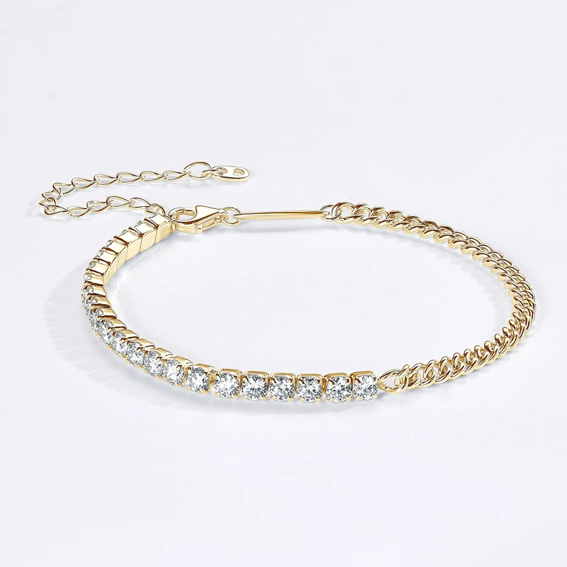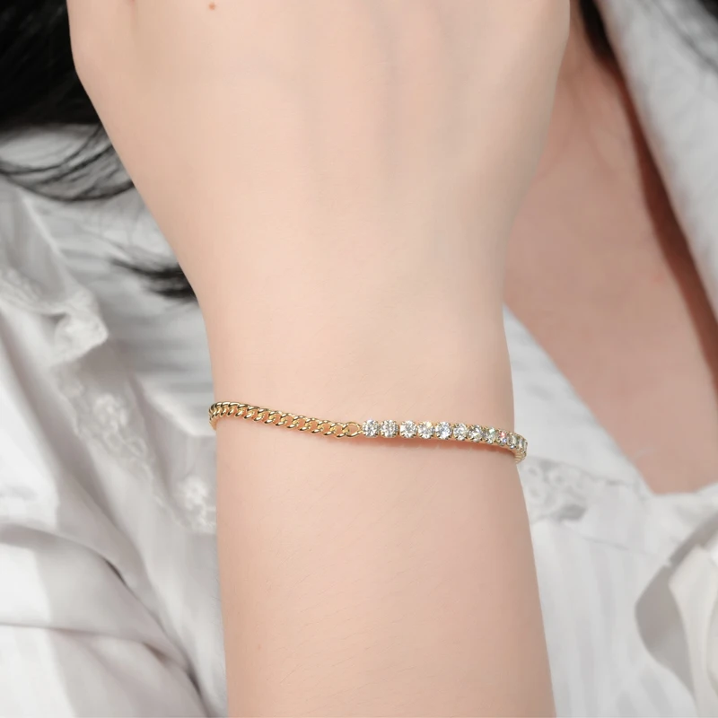 Pure Silver 925 Luxury Jewelry 3mm 2.20cttw Full D Moissanite Diamond Half Cuban Tennis Bracelets for Man Women