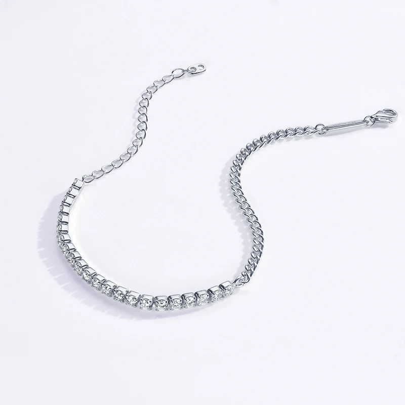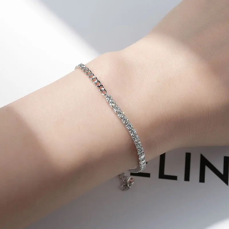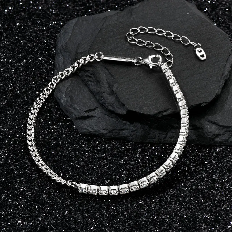 Pure Silver 925 Luxury Jewelry 3mm 2.20cttw Full D Moissanite Diamond Half cuban Tennis Bracelets for man women |