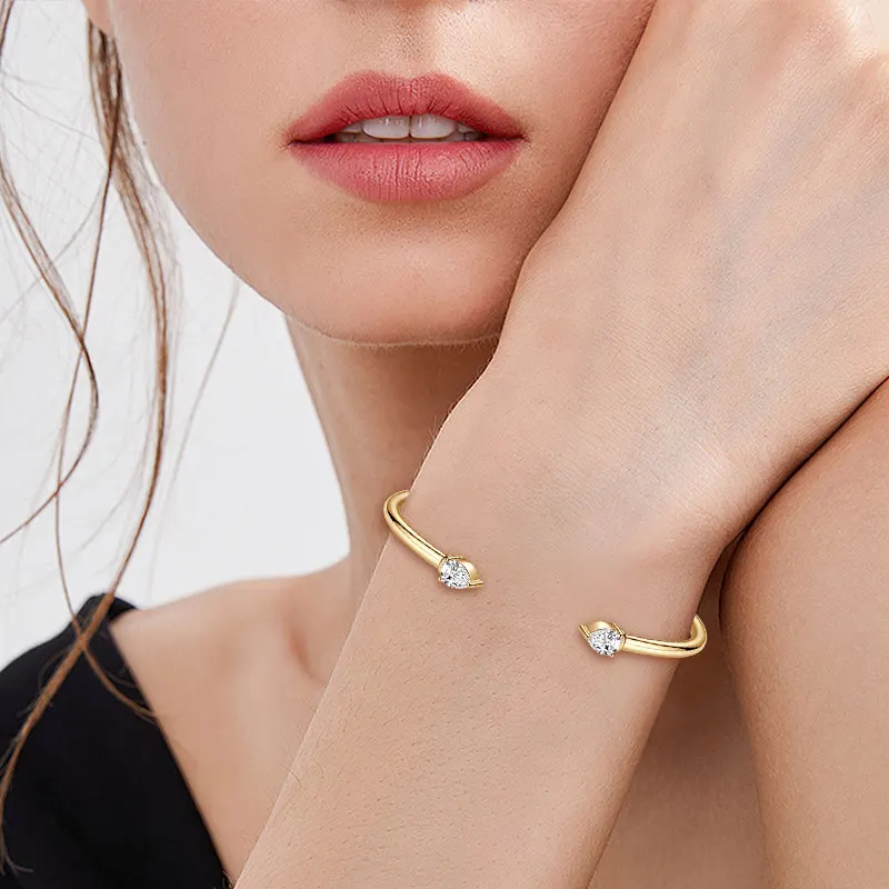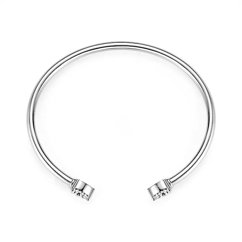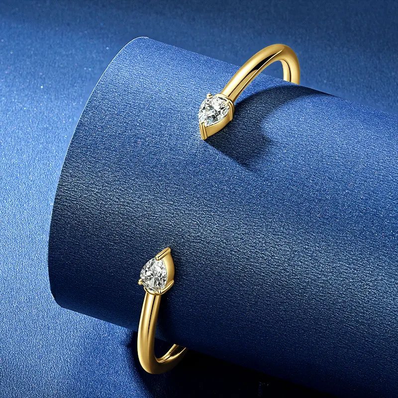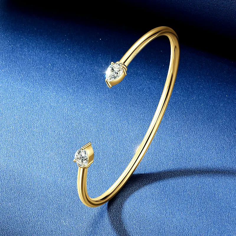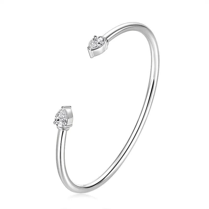 Simple 925 Sterling Silver Pear-shaped Cut 5x7mm 0.8ct Moissanite Open Cuff Bangle Flex Bracelet for Women with Certificate