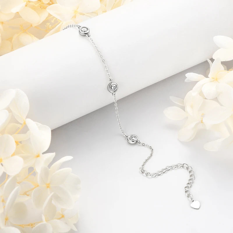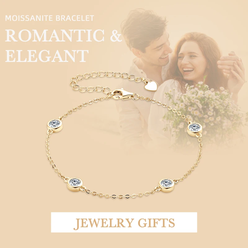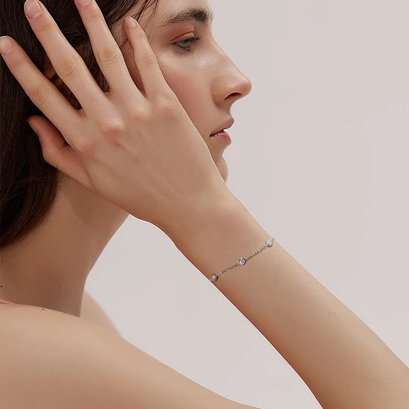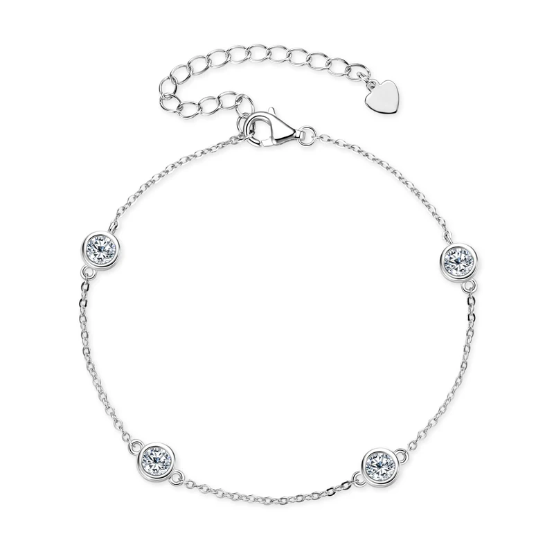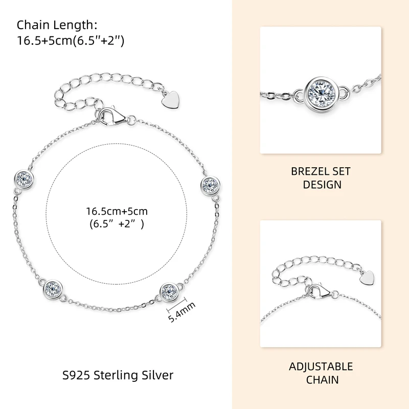 Certified 4mm Bezel Moissanite Bracelet For Women Girls 925 Sterling Silver Adjustable Bracelets Hand Chain Jewelry Gift |