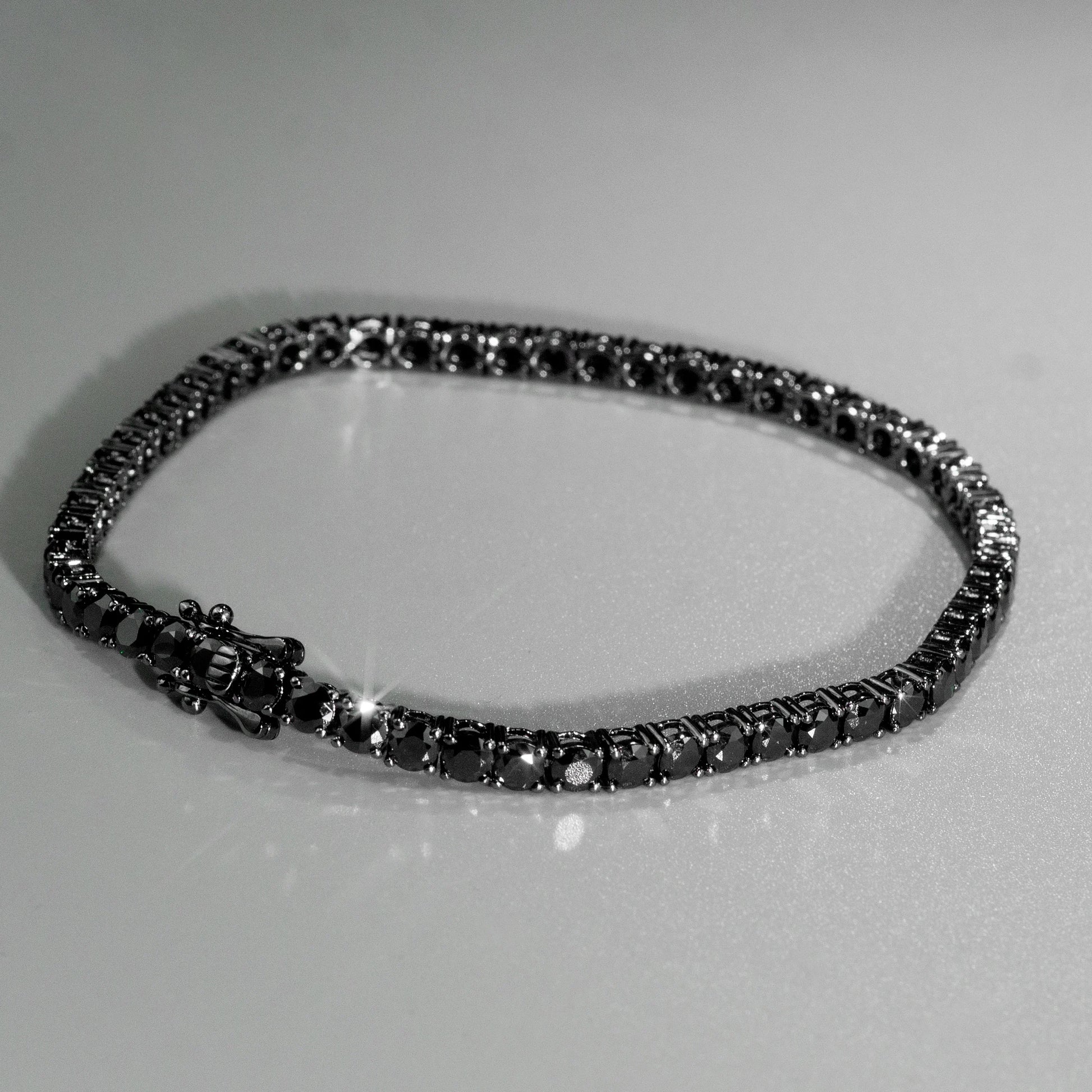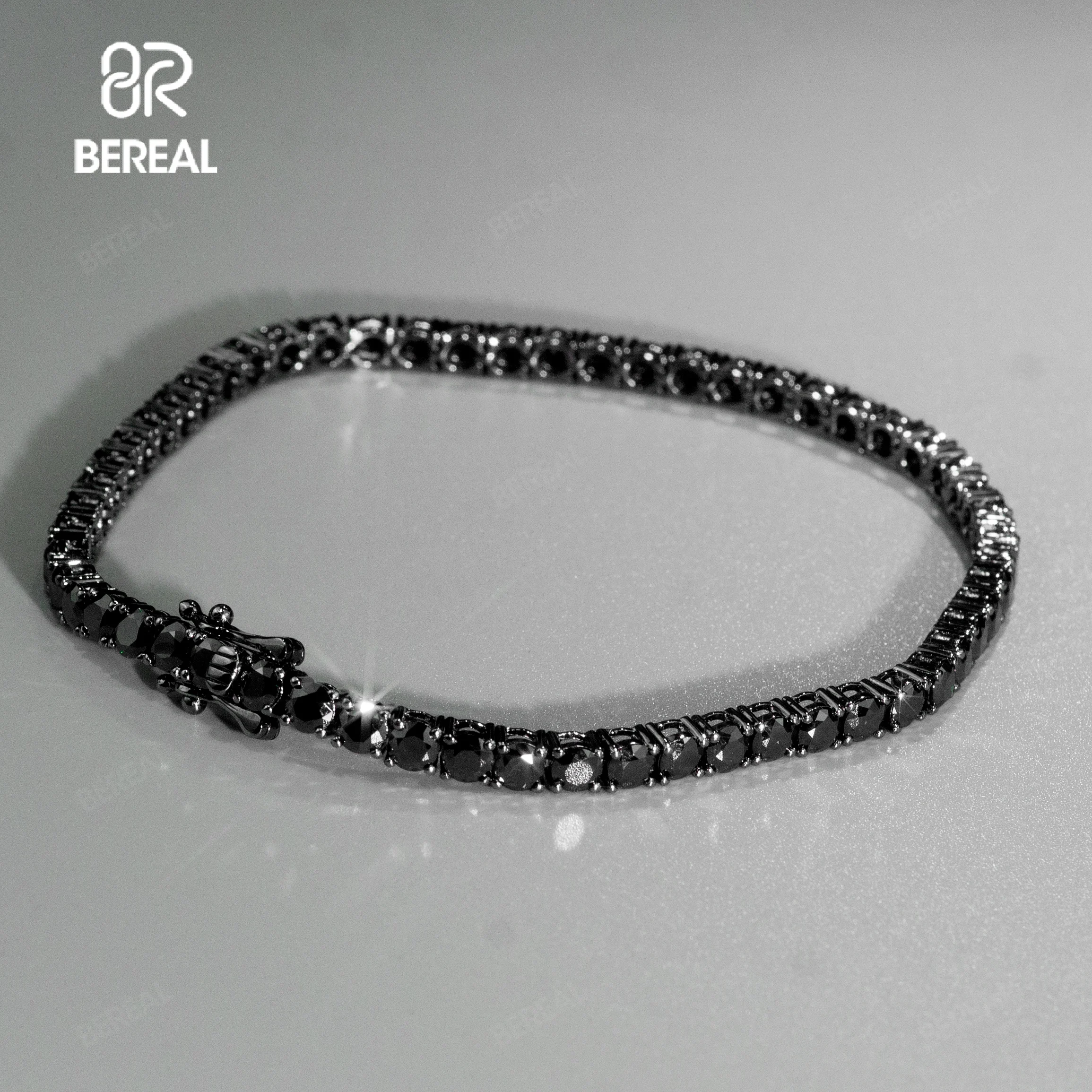 [US] in Stock 5MM Black Vvs Moissanite Tennis Bracelet Iced Out Round Brilliant Cut Diamond 925 Silver Tennis Chain