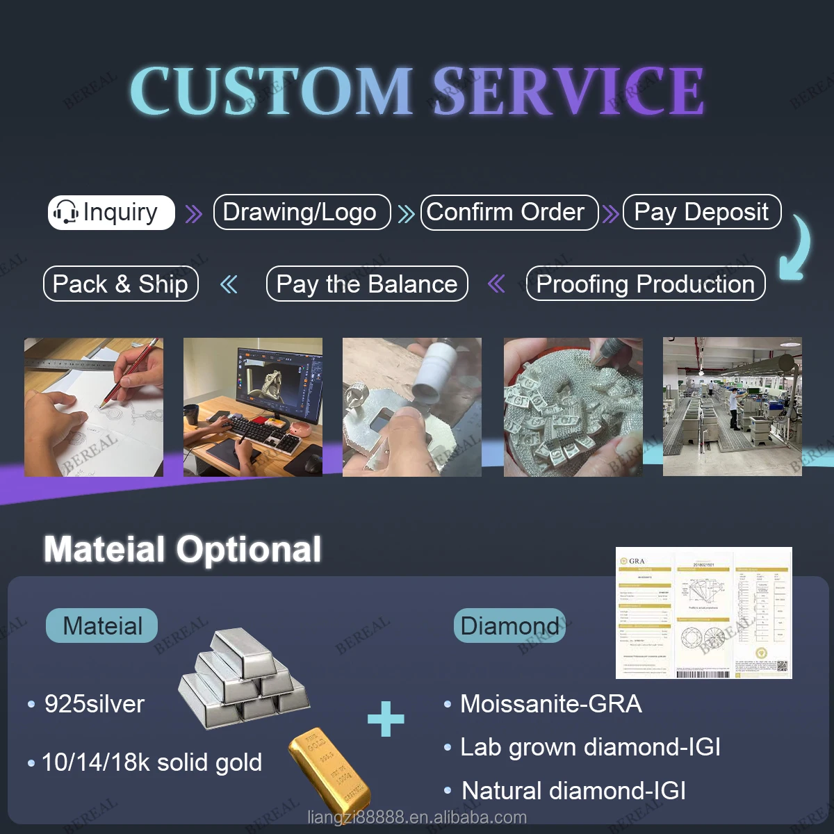 For the same style, we have three materials: copper, 925 silver and K gold. There are also four kinds of gemstones that can be inlaid, namely zircon, moissanite ,cvd diamond and true diamond. 925 Silver+Moissanite , Please Contact US |