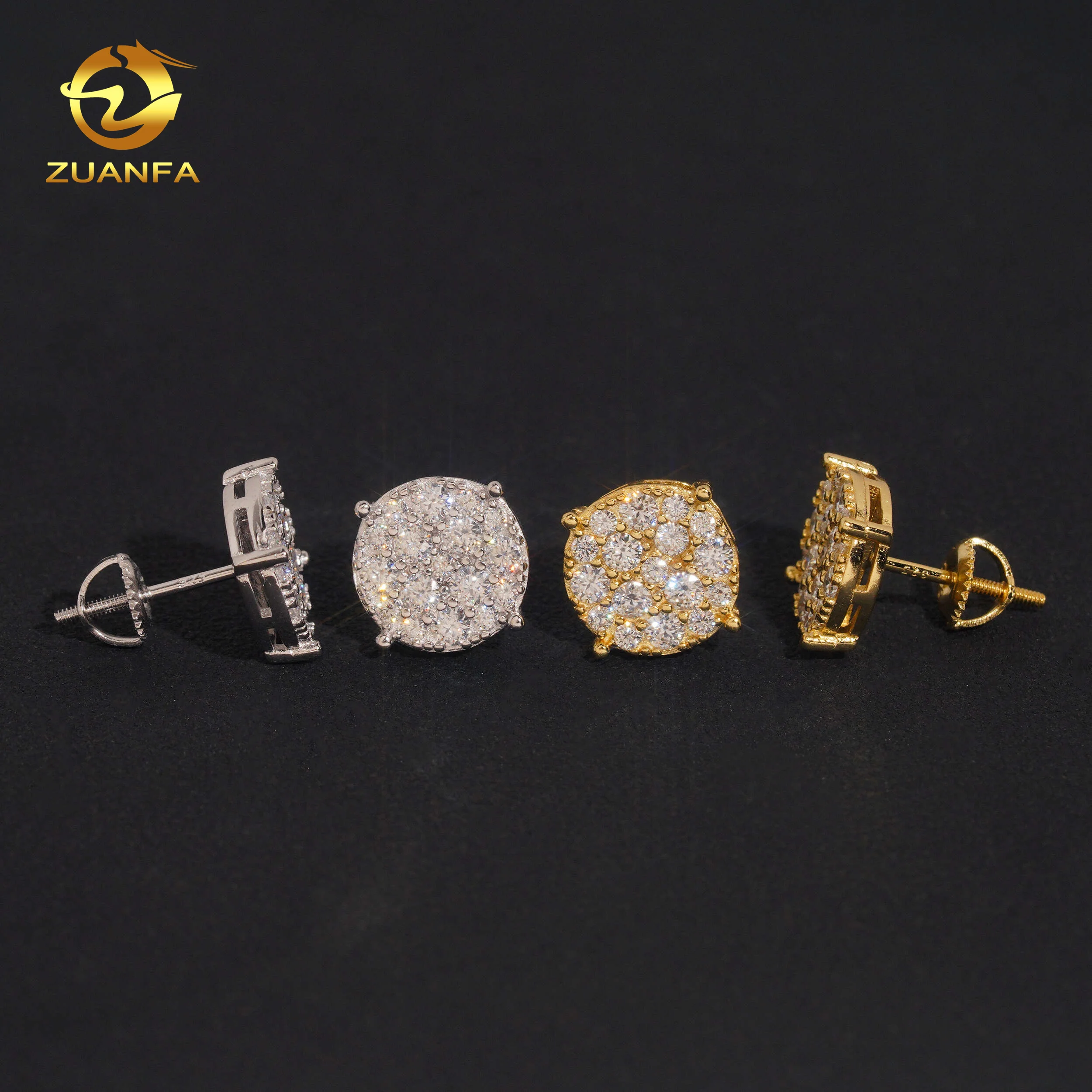 US Local Stock Fast Shipping Hip Hop Style Iced Out Mens Iced Out Diamond 925 Silver Moissanite Earrings