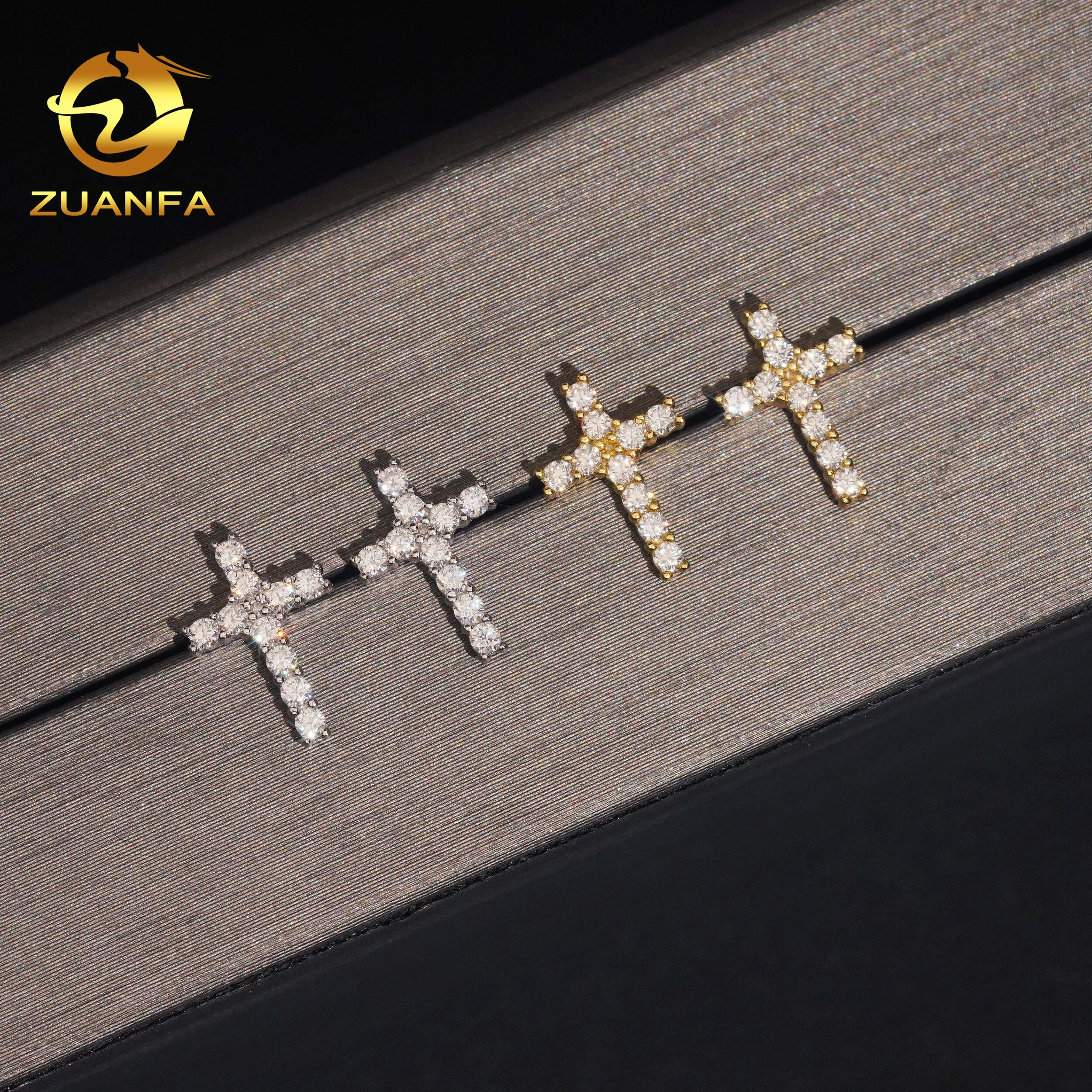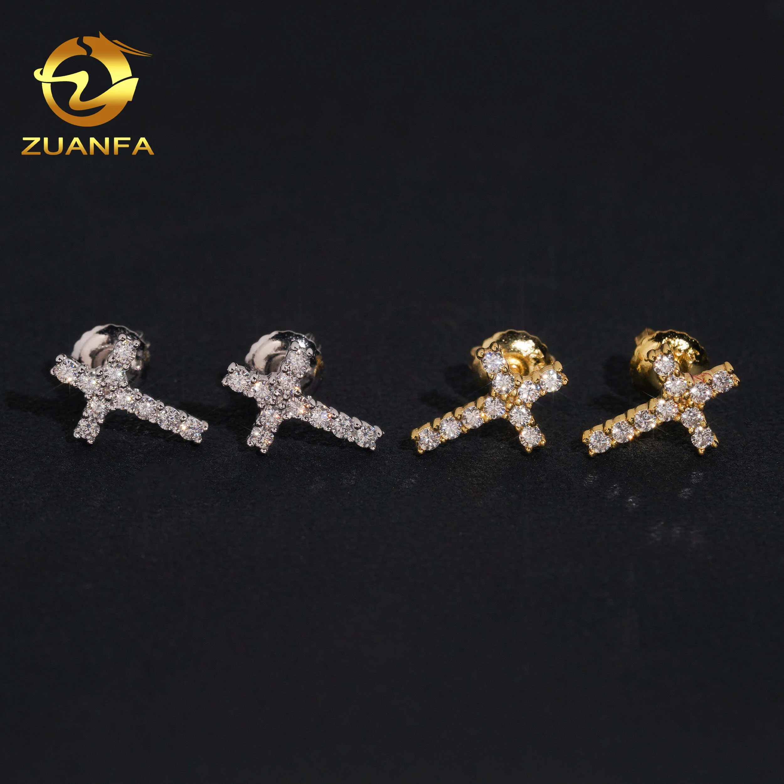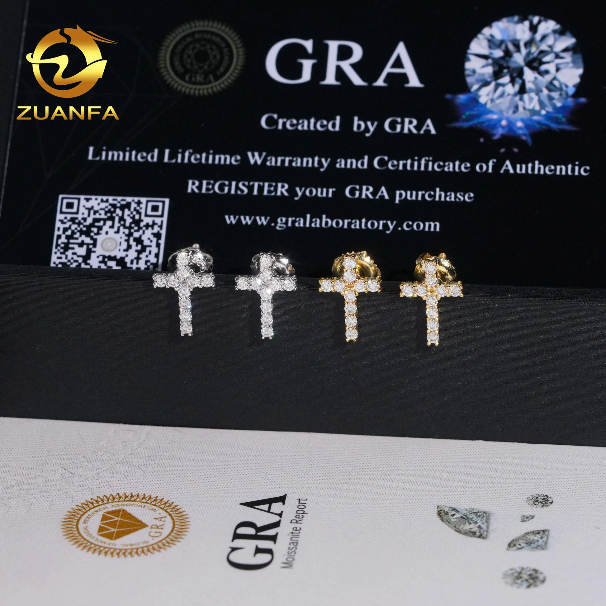 USA Stock Gra Certificate Cross Moissanite Stud Earrings 925 Sterling Silver Moissanite Iced Out Earrings for Men and Women