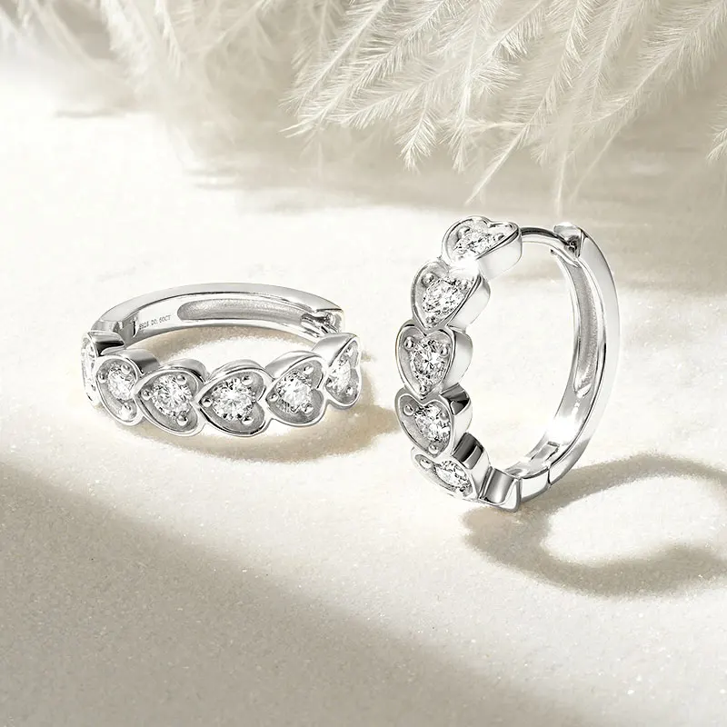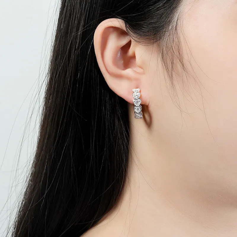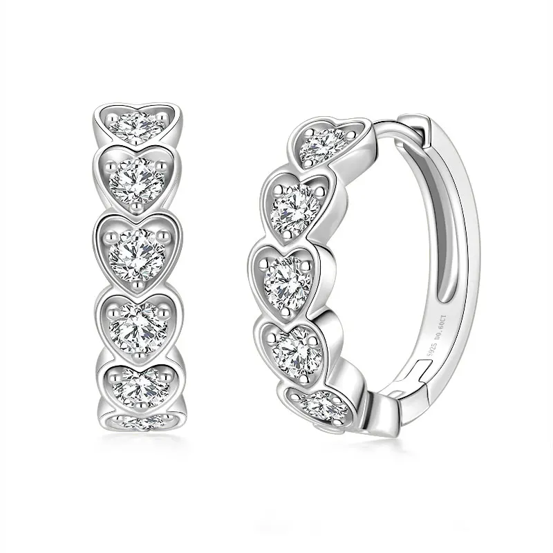 Fast Delivery925 Silver Moissanite Heart Hoop Earrings for Women |