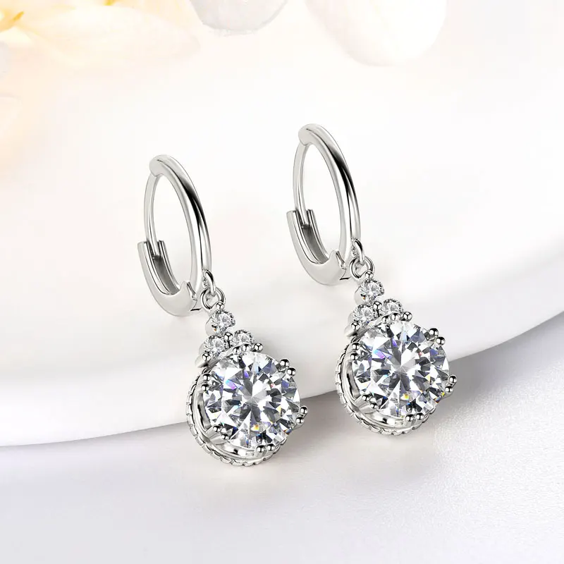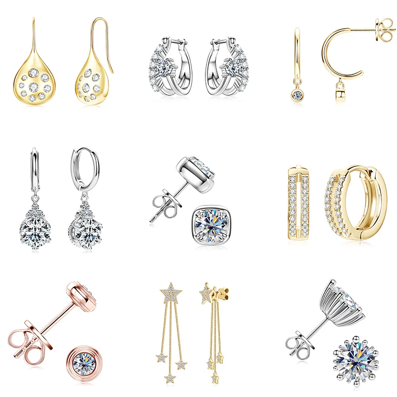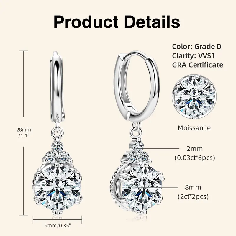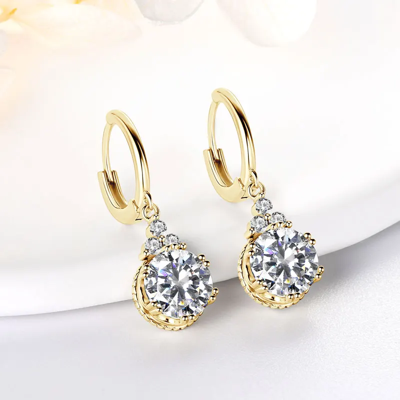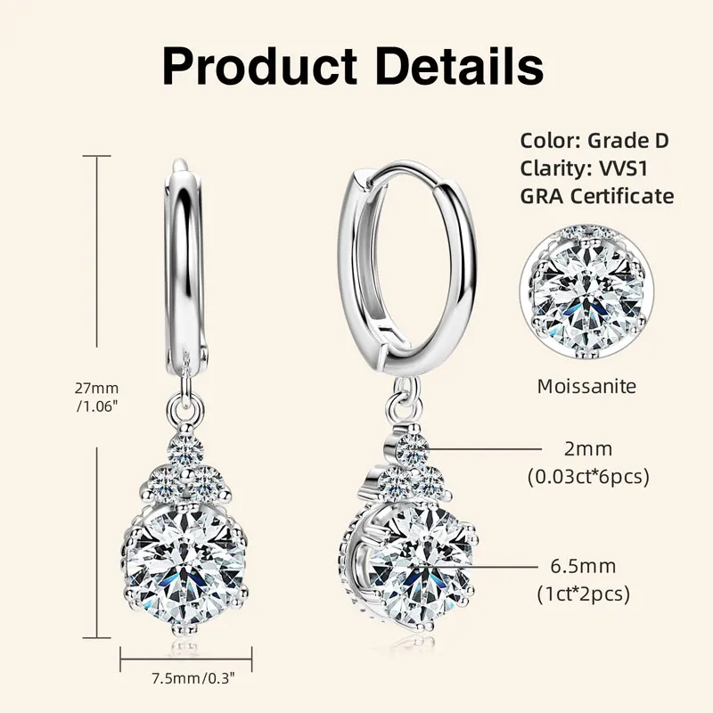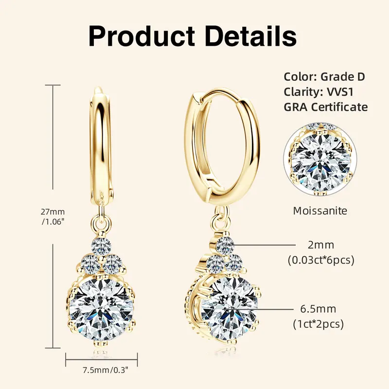 Wedding Jewelry Classic 925 Silver Gold Dangle Hoop Earrings Moissanite Drop Earring with GRA Certificate |