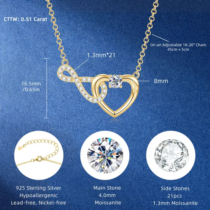 925 Silver Moissanite Infinity Heart Shaped Pendant Necklace for Women with GRA certification