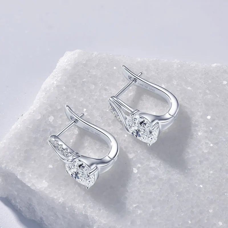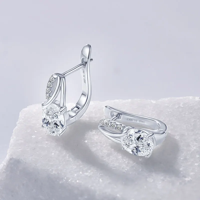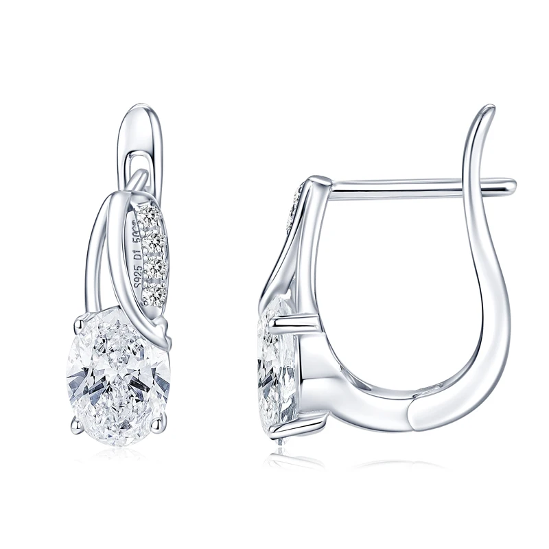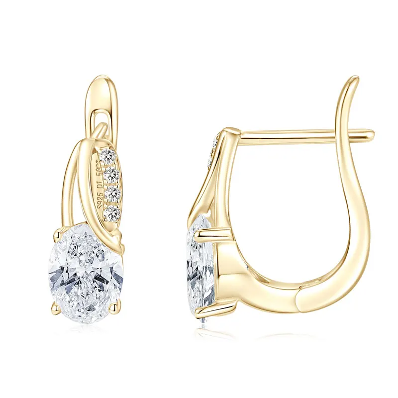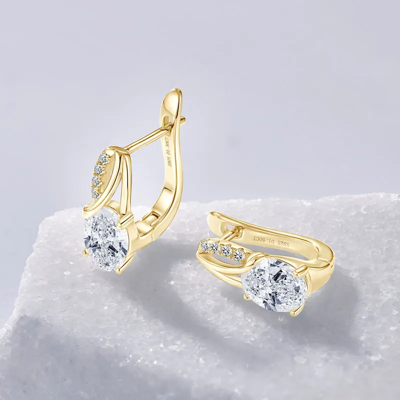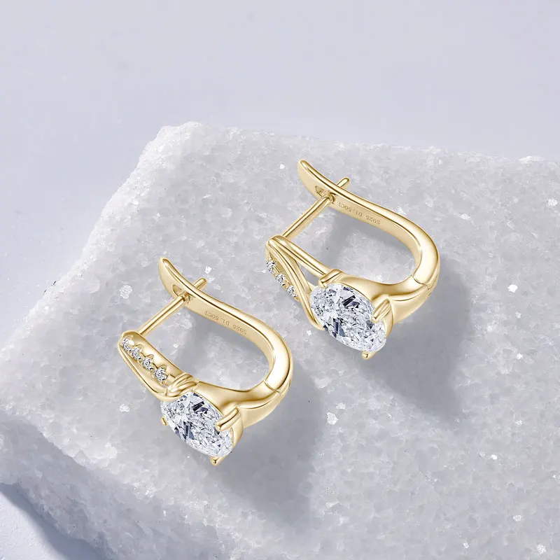 Women Design Lady's Jewelry Gold Plating Trendy 925 Silver 6x8mm 1.5ct Moissanite Oval Huggies Earring for Women Gifts
