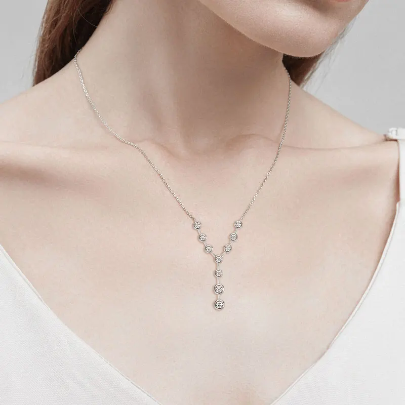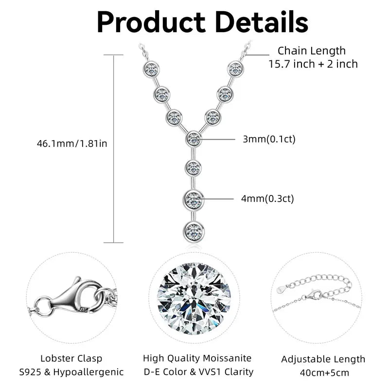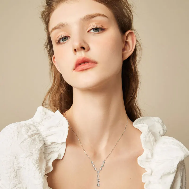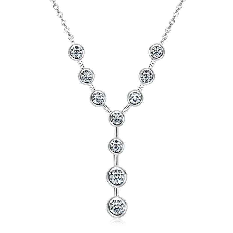 925 Sterling Silver Y-shaped Necklace Moissanite Pendant Necklace For Women Chain Jewelry